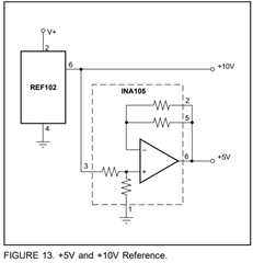 我选择两个 REF102作为电压基准。 我还连接了数据表中介绍的 TRIM 端口5。