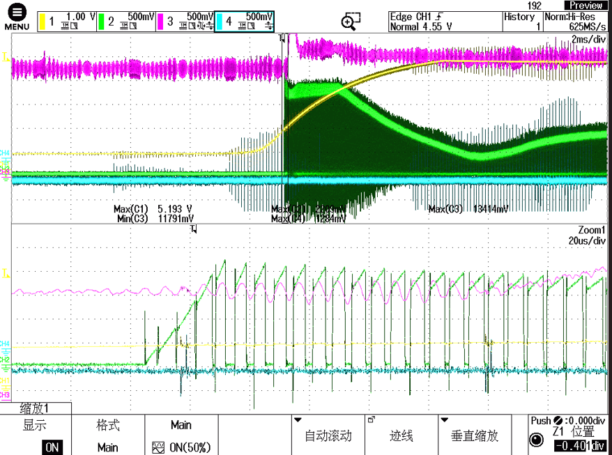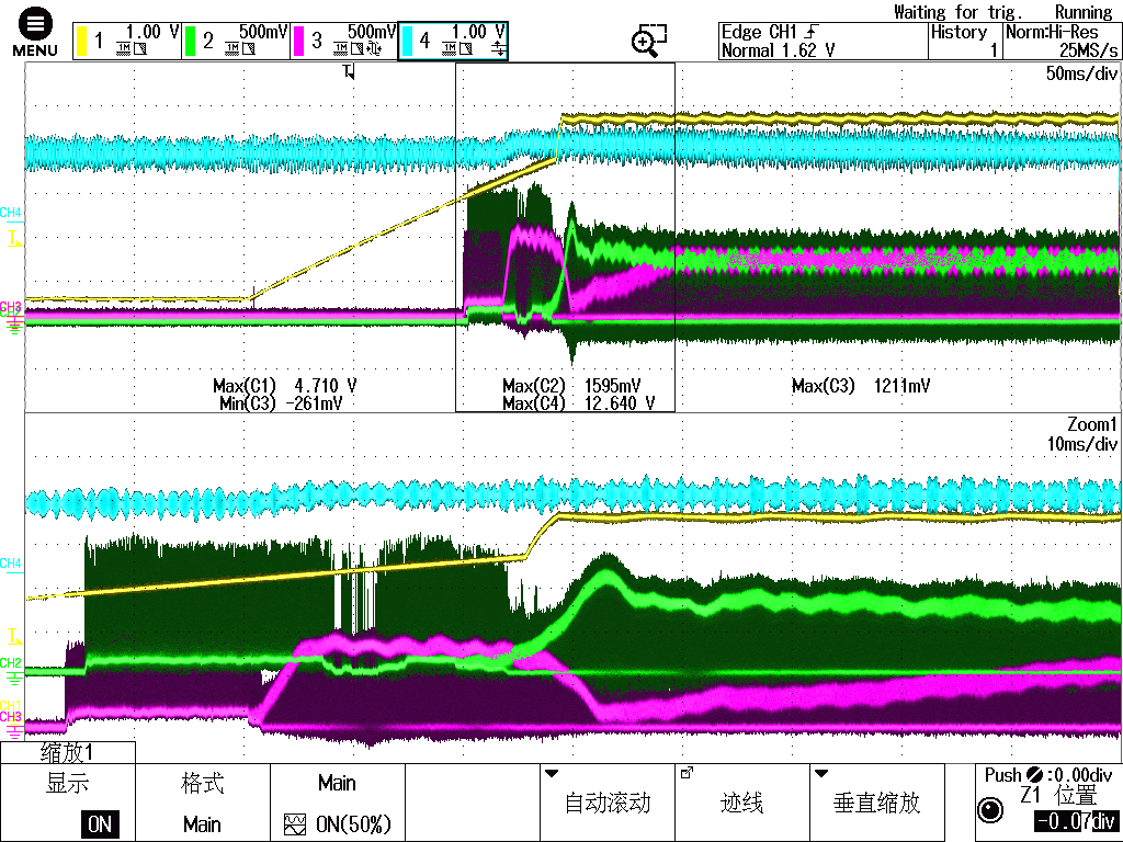 我遇到 UCC28950问题、持续开/关测试期间软启动功能是否出现以下故障、是否正常?