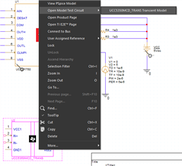 在放置器件后、您可以从右键点击菜单中拉取默认测试电路: