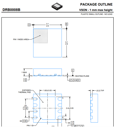 比较 DRB0008A 和 DRB0008B 时、"外露散热焊盘"器件是不同的。