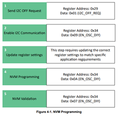 启用输出轨时、许多寄存器无法更改。 必须对 NVM 进行编程、以便新设置在上电后生效。 TPS65219 NVM 编程指南的第4章提供了进行更改的正确步骤: https://www.ti.com/lit/ug/slvucm5/slvucm5.pdf