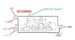 我有一个与 RSHUNT 相关的疑问。 每个转换器模块的最大输出电流能力为20A、输出负载为50W。