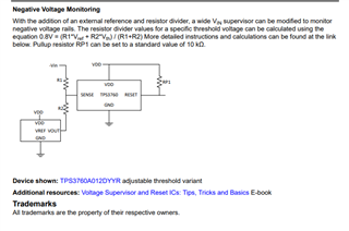 很抱歉耽误你的时间。 我们没有一个器件可以同时对+和-电压轨进行窗口监控。 TPS37是我们能够提供的出色器件、 https://www.ti.com/product/TPS37