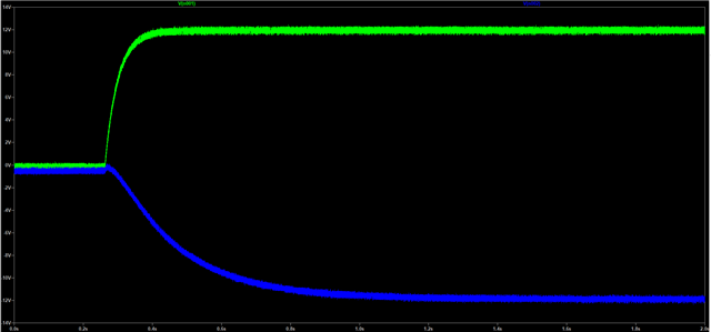 您是否可以推荐某个组件(Spice 模型会很棒)、以便我可以在某些配置中使用它将电源输入转换为信号、如仿真的 Vout+ Vout-中所示?
