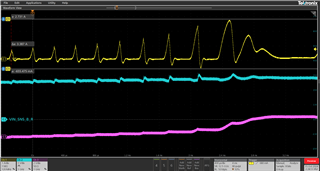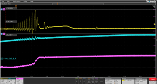 打开3.3V 电源时、Vmin (2.7V)处的电流脉冲以及这些电流峰值也会影响输入电压。
