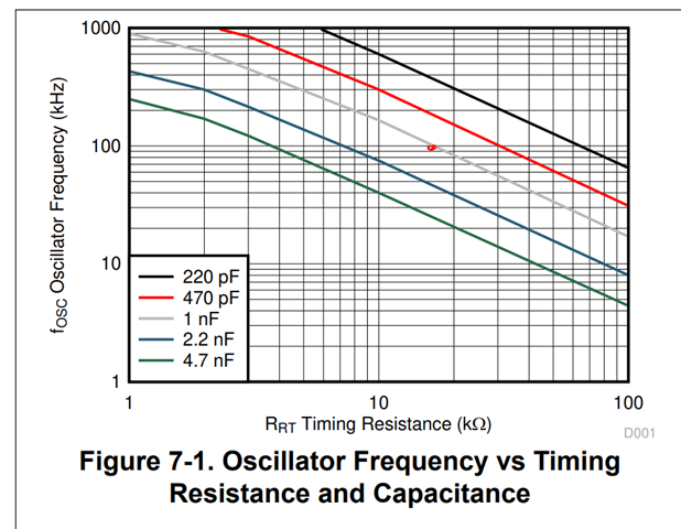 我使用的 UCC28C55为。 在 RT 引脚中、放置了 RT=17.4K Ω 且 CT=1nF。 从图中、我应该得到100kHz、但我得到50kHz。 为什么会这样?