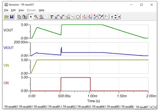 我有一个进行仿真的 TPS27081A 设计、已注意到以下行为。 如果我在 Vin 已建立(在本例中为5V)的情况下开始仿真、则可以看到器件对 ON/OFF 引脚做出正确反应(最初、驱动该引脚的 I/O 设置为0V)。 然而、如果我在 Vin=0V 的情况下开始仿真、然后将其斜升到5V (所有这些都同时 ON/OFF 引脚仍为0V)、我会看到 Vout 也会上升到5V 并保持开启状态。 好像忽略了开/关引脚。 该器件是否能够在 Vin 导通的情况下在 Vout 处于关闭状态时唤醒?