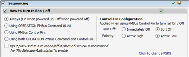 • 如果 ON_OFF_CONFIG 设置为"始终"、则在器件断电时不应用软关闭。 仅当电源轨由于故障或重新时序而关断时、才应用软关断。
