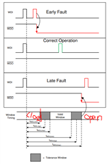 超时看门狗与窗口看门狗的主要区别在于、窗口看门狗具有闭合窗口、如果在该帧中检测到脉冲、故障将标记。
