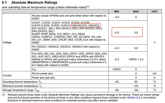 客户有时需要具有3.6V 输出电压的 VDLDO1210和 VINLDO3。 但我们发现绝对电压和建议电压均为3.6V。 我们想知道的一些信息: