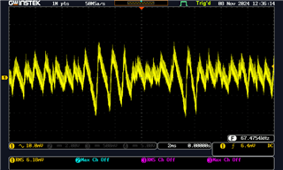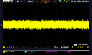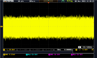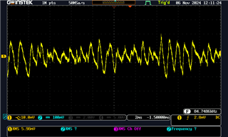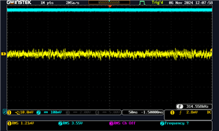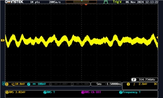 这是输出纹波的测量:红色迹线是输入 DAC 控制、绿色迹线是直流/直流输出电压