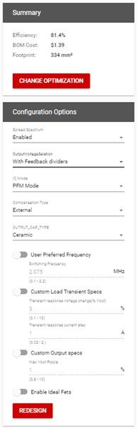 我目前正在为大学的学生开发一种小型便携式电源。 安装了两个 LM25148RGYR、一个用于1.8V 电压轨、另一个用于3.3V 电压轨。 我在 Webench 中使用以下配置计算了相应的电路: