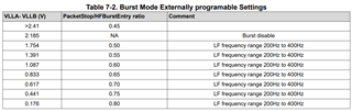 根据表、要禁用突发模式、VLA-VLLB 应介于 2.185V ≥VLA-VLLB > 1.754V 之间。