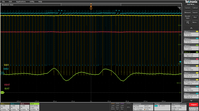 在 CC 模式下、高于12.5V 的电池电压会定期启动电流纹波。