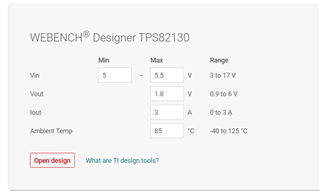 我尝试使用 WEBENCH 网站的 TPS82130并键入我们的设计要求、但显示"无法创建设计"。