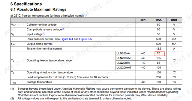 TA 表示-40°C 至70°C 的环境温度、对吧? 环境温度不应超过70°C。 ULN2003的工作温度是150C (Tj)、对吧? 谢谢。