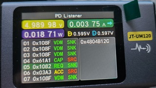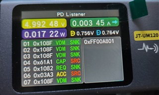 在这里、我还可以使用 USB 测试仪来查看电压和电流读数。 输出电压
