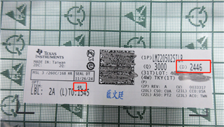 我想问一下 PCB 板上的印刷位置是否代表批号? 印刷电路板上的印刷是否与标签上印刷的批号2446+相对应? 数据表是否解释了此位置的含义?