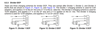 这些分频器设置是与 BC1.2 DCP 相关的额外充电器设置、它们为电源设置添加了更多选项。 这些似乎与一些传统的"受欢迎的设备制造商"有关、因此很可能包括传统的 Apple 充电器。