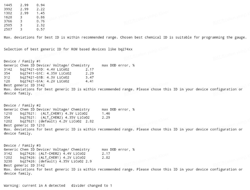 根据您的响应(您需要将 ChemID 编程到电量计)、我们仍然不知道如何获取我们当前使用的电池的相应"阻抗表"。