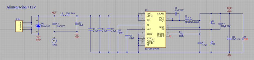 我使用网络软件创建了这个电路、它可以正常工作、但有时会发生这种情况。 连接12V 电压时、通常无法启动。 在-12V 输出下、有0.6V 电压、有时在您插入连接器时会启动。 如果您连续多次插拔插头、它将启动。