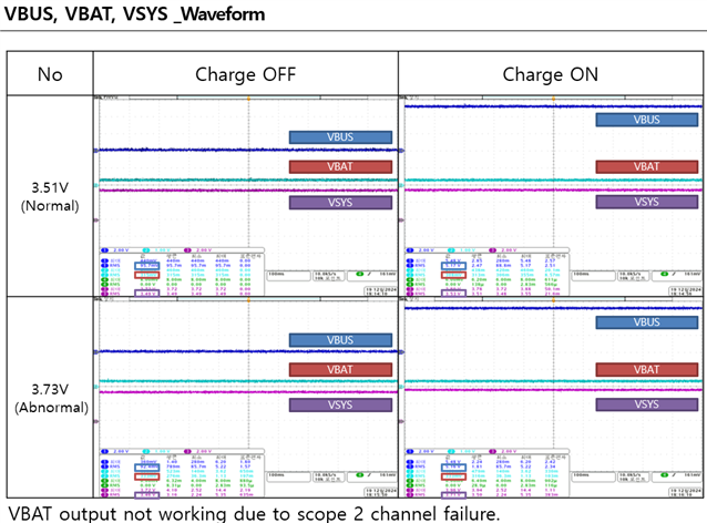 客户检查充电操作、从3.1V 到4.1V、以0.1V 为增量、看看是否根据电池电压充电。