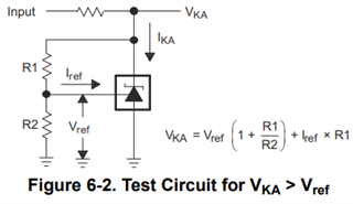 如果您求解 Vin、则会得到 Vref 具有正误差因子的 Vin+Iref*Rin。 看起来不正确的公式仅在每个数据表的"编程输出/阴极电压"部分中提供。