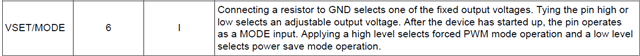 为了完成我的设计、我是否需要设计一个额外的电路来在下拉和上拉状态之间切换 VSET/MODE 引脚? 或者我是否误解了数据表中的说明、可以直接将此引脚连接到 Vin?