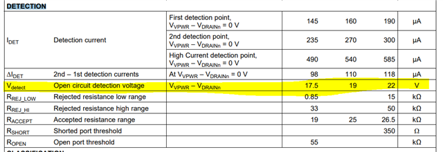 我们对48VDC 输出使用 PSB PD TPS23861、现在、我们得到 V (DRAINn)大于28V 的波形和电压 周期性变换(500ms 频率)、