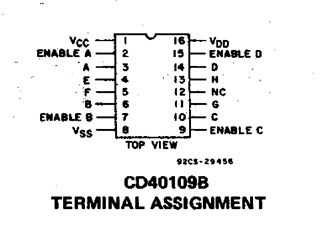 我想使用的另一个逻辑电平转换器是这一个:CD40109B、它具有以下特性...