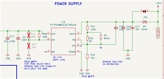 在我们的电路中、我们可以看到输出负载电流将为纯泄漏(电阻分压器以及通过电容器损失的任何东西)。 在我们的测试中、3.3V 电源轨上没有额外的器件。 我希望 R44和 R45电流为20微安(由于 R22为0欧姆、R4不在电路中)。 我预计电容器泄漏电流的单位为纳安(绝缘电阻为10兆欧)。