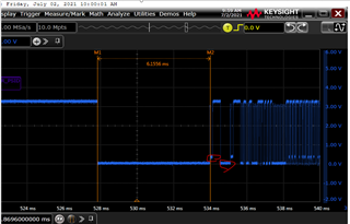 这里是在终端客户的板上捕获的 BQ2022的 SDQ 信号、为什么有两个不同的逻辑"低电平"电压电平?