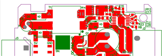 3.在初级侧的所有可用空间上放置一个宽而大的 GNDP 平面。 该接地平面需要连接输入电容器 VIN 的回路和 RC 电阻器的回路(初级开关环路)。 请参阅 EVM 的以下示例。 该接地平面不仅有助于实现良好的热性能、还有助于实现低 EMI、从而减少变压器中漏电感产生的任何残余 H 场。