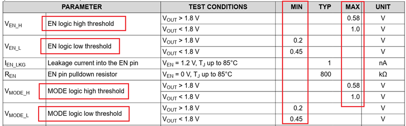 TPS61094的文档说明 EN 逻辑高阈值为: