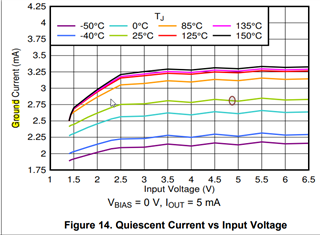我们尝试测量了 TPS7A52-Q1上的空载电流、观察到大约6mA (考虑0.6mA 的探头偏移)在输入电压为4.8V 时消耗了2个 TPS7A52-Q1 LDO。