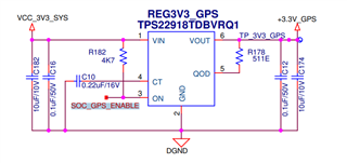 但是、当使用 SOC_GPS_ENABLE (GPIO)保持 ON 引脚为零时、我们将获得2.2V 的输出电压。