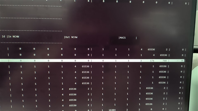 使用 PC_DSP_TEST_dl_algo.out 运行验证时、会发生错误。 经过初步调查发现,这是因为我们的 bev 模型有5个尺寸,这比 NUMCAMERA 的传统 NCHW 格式(即从不同角度看相机的图像尺寸)更多。 TIDL0900不支持此特性、但 TIDL1001添加了 DIM1和 DIM2尺寸。 我们认为、现在的投入应该能够支持多达6个维度。 当前我们遇到的问题是在计算过程中 NUMCAMERA 维度总是被错误地识别为簇大小。如上图所示、六个维度是 N、DIM1、DIM2、C、H、 我们的输入被错误地标识为4*1*1*3*576*768。