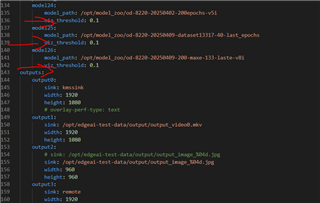 上面的显示了主机 PC 中的 CONFIG.YAML。 后处理过程中的 detection_threshold 为0.1。
