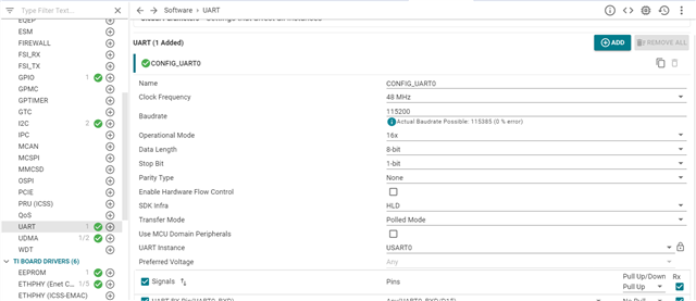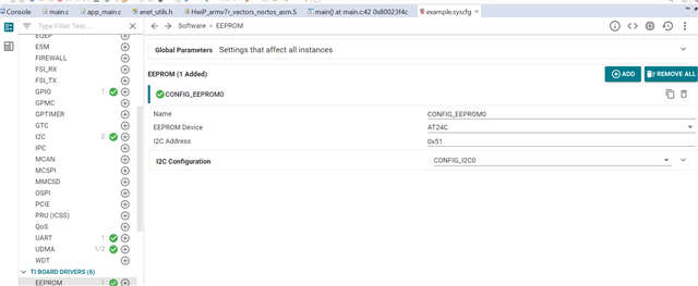 我目前正在使用带有 SDK 10.01.00.32的 AM6442入门套件板。 我的分配需要在电路板上实现以太网功能。 当前使用"enet_cpsw_rawhttpsserver"示例作为我的分配基于基于 nortosr5f 的实现。 当我移植此代码并尝试在电路板上运行时、最初出现错误、然后我修改了 example.syscfg 并进行了以下3项更改: