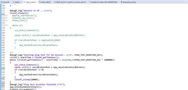 我对代码进行了小幅修改、注释了 http 部分并按如下方式添加了 ping 测试部分: