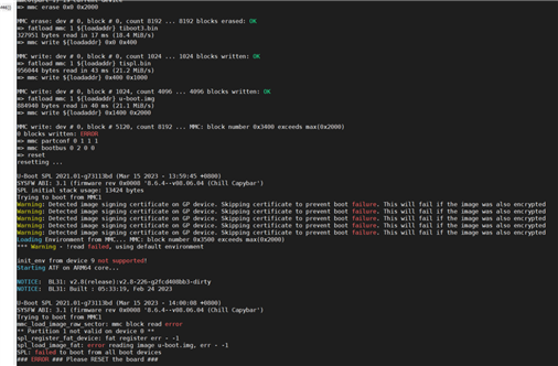 但执行 MMC write ${loadaddr}0x1400 0x2000应导致正常写入。