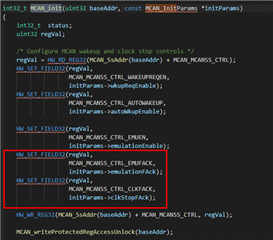 在 CAN 模块 MCAN_INIT 函数中、下图中红色框中的寄存器是 j721s22 Registers_Public_ 20250116文件中的保留位。