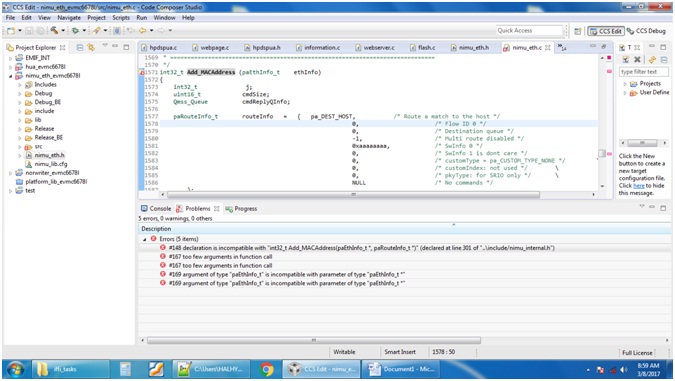我已经下载了支持补丁,以添加并编译到端口‘0’[Nimu-EMAC0.zip’]。 我能够编译平台库、但无法编译 EVM 的 NIMU 库。 “自述文件中给出的步骤: