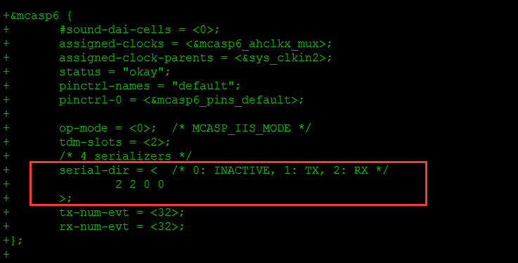 DTS 是否支持串行目录中的两个 Rx 配置?有一个 adau1978声音代码连接到 am5728的 mcasp6、如下所示: