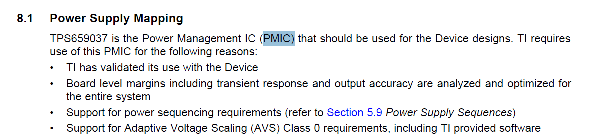 TPS659037是电源管理 IC (PMIC)、应用于器件设计。 TI 要求