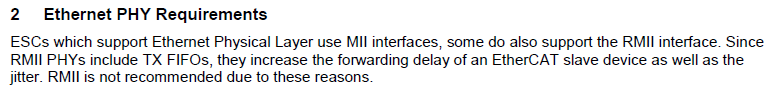而 EtherCAT 主站使用"通用"以太网。 因此、对于 EtherCAT 主站、MII 或 RMII 都是正常的。