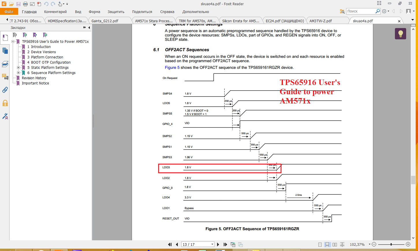 但是、如果我们看一下《针对 TPS65916对 AM571x 进行供电的用户指南》、我们将看到 VDDA_CSI 连接到 LDO3、该 LDO3按顺序打开了第6个或第7个。