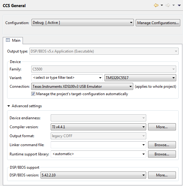 我正在使用 CCS5、DSP/BIOS 5.42.2.10。 我从一个 DSP/BIOS "tsk"示例开始、但是当我编译项目时、我会收到此警告: