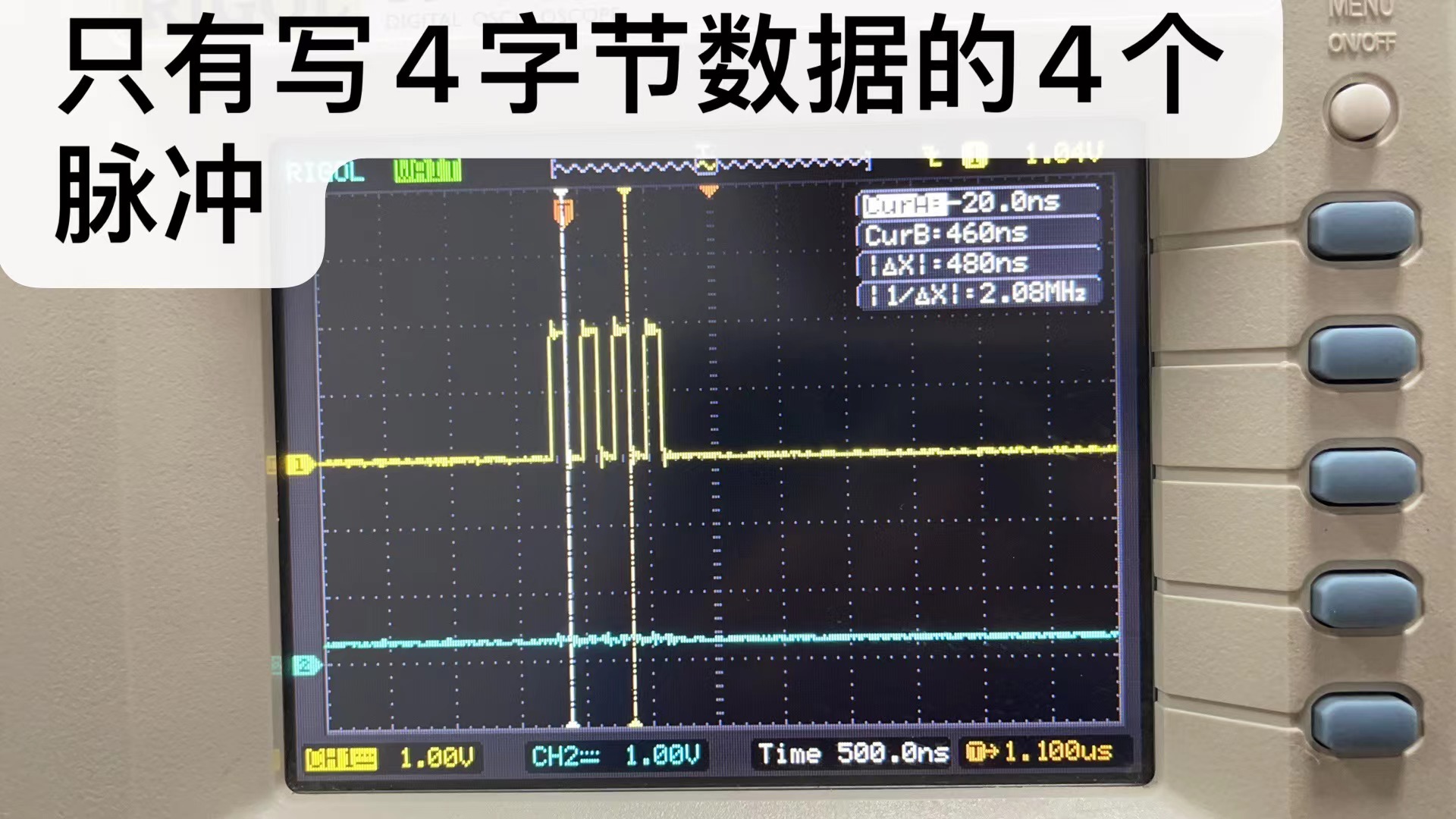 只能测量包含4字节数据的4个脉冲、如下图所示: