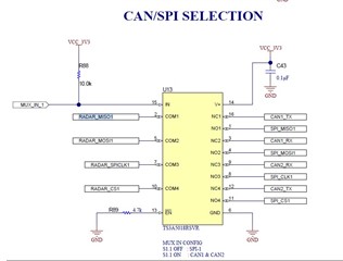 1.在链接的原理图中、GPIO_0 连接到 CAN-FD 收发器、但您的意思是、它应该是 E14 引脚 (SPIA_MISO) 和 D13 引脚 (SPIA_MOSI)、这是否打算在下面的 CAN/SPI 选择中将 RADAR_MISO1 和 RADAR_MOSI1 连接到 TS3A5018?